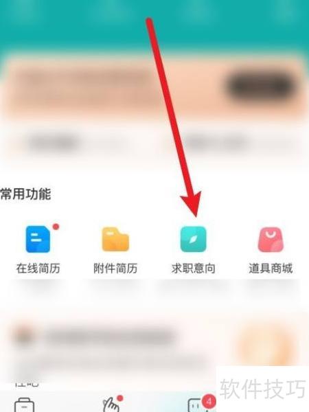 1、 打开手机应用,进入个人页面后选择求职意向进行设置。