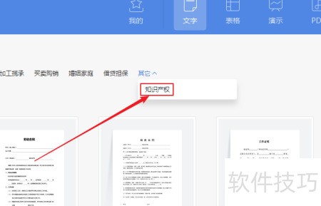 5、 在已打开的法律合同页面,点击其他分类旁的下拉箭头。