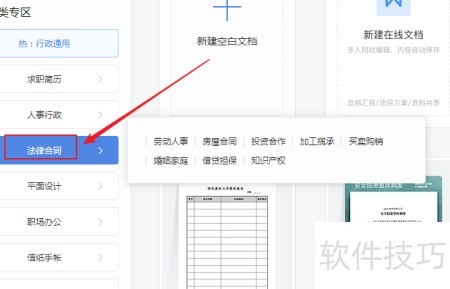 4、 在文字页面左侧,点击法律合同选项。