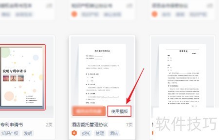 7、 进入知识产权页面,选取酒店委托管理协议模板,点击使用模板即可完成操作。