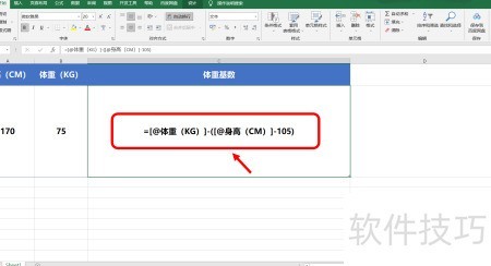 7、 第四步,用结果除以身高减去一百零五的数值。