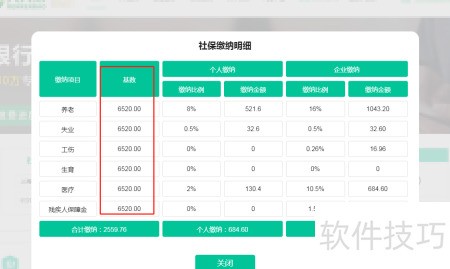 2、 点击查看详情,显示社保缴费明细,分别列出个人和企业实际缴纳金额。