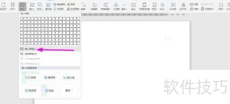1、 打开Word文档,依次点击插入和表格,然后选择插入表格功能。