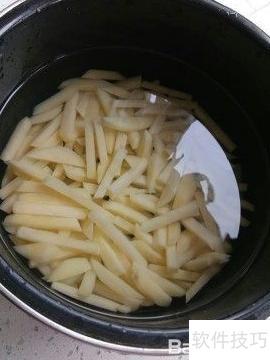 2、 用冷水冲洗一两次,让土豆条冷却。