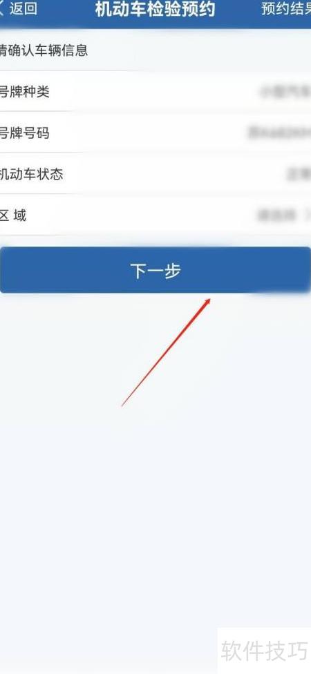3、 请核对车辆信息,点击下一步完成预约流程。