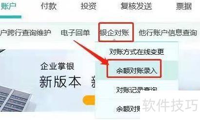 2、 进入账户后选择银企对账,点击余额对账录入。