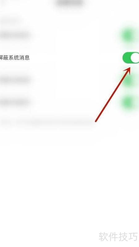 3、 在设置中点击屏蔽系统消息右侧的圆点