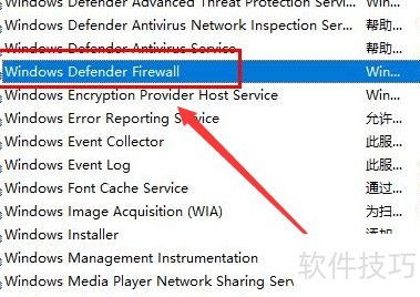 2、 在弹出窗口中,定位到Windows防火墙相关选项。