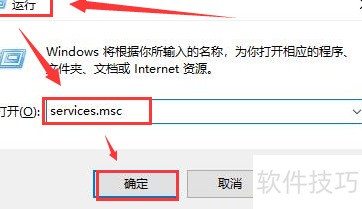 1、 输入services.msc并确认,进入下一步操作。