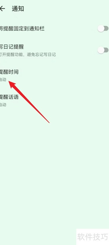 1、 打开日记本,进入通知页,点击提醒时间进行设置。