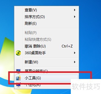 1、 右键点击桌面,从系统菜单中选择小工具选项即可。