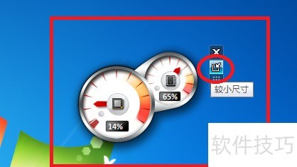 3、 将CPU仪表盘从小工具库中用鼠标拖出并放置到屏幕指定位置,操作所示。