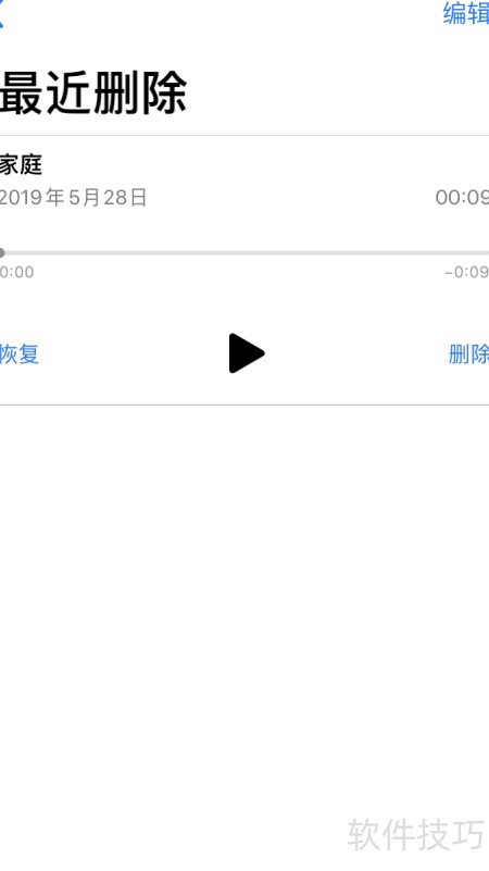 4、 若发现编辑有误,可先删除录音,再从最近删除中找回并恢复。