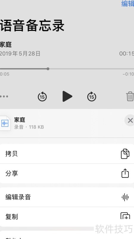 2、 选中录音后,点击下方功能按钮进行编辑即可完成操作。
