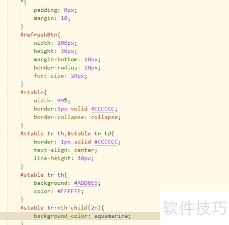 3、 通过style标签使用通配符定义全局样式,并结合ID选择器与元素选择器,分别设置按钮和表格的外观风格。