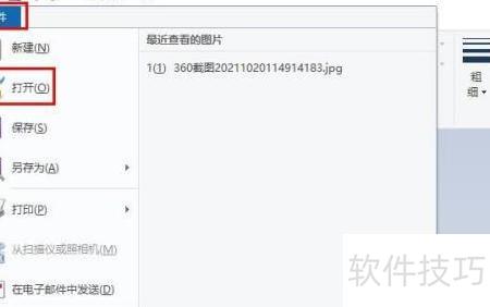 4、 进入文件菜单,选择打开,然后选中需添加徽标的图片。