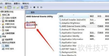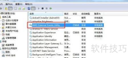 重启Win7系统中的AMD外部事件实用程序,可通过任务管理器结束进程后重新启动该服务。