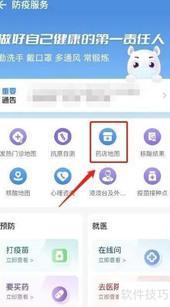2、 进入防疫服务,选择药店地图功能。
