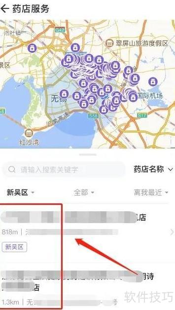 3、 第三步,进入药店服务,查询周边药店详情