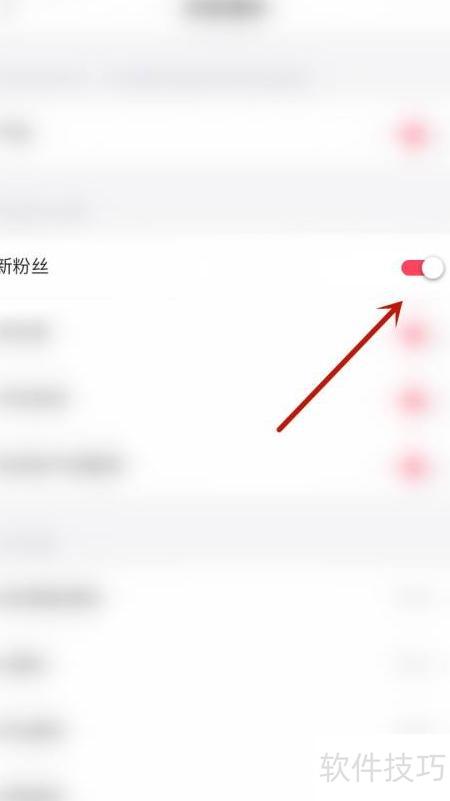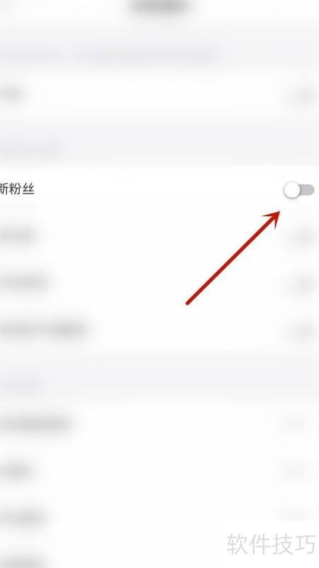 3、 在设置页面点击新粉丝右侧的圆点
