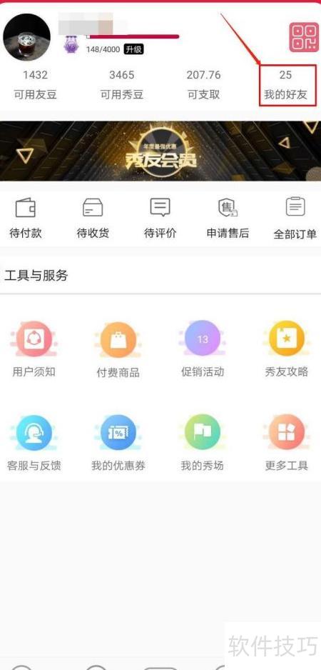 5、 在我的页面中点击我的好友,即可查看已成功邀请加入秀友的具体人数及好友名单。