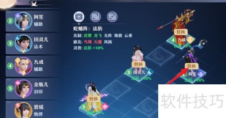 4、 进入后点击替换,挑选高等级仙友组合即可。