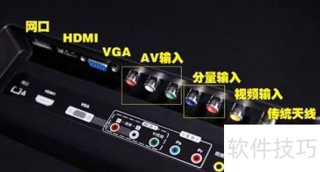 2、 找到电视背面的AV接口,通常标有颜色标识,按图示位置连接即可。