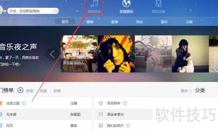 2、 点击首页顶部的我的音乐