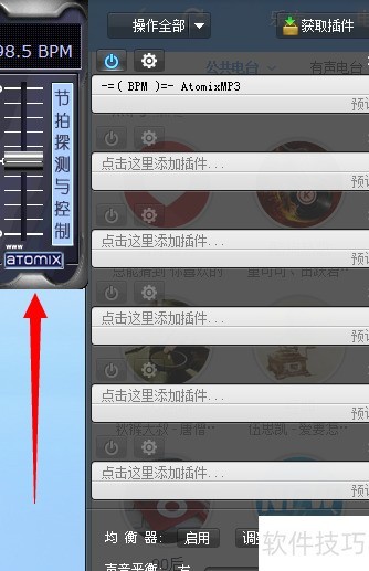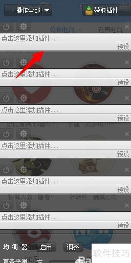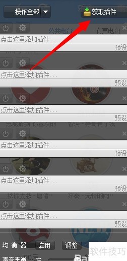 3、 进入音效设置页面,点击右上角获取插件按钮。