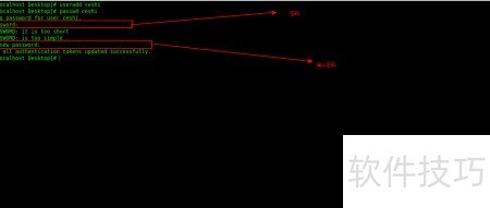 2、 添加用户后,执行 passwd ceshi 命令为其设置密码。