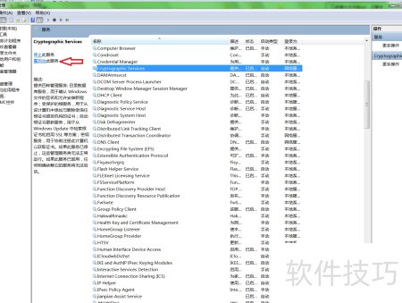 4、 在右侧列表中定位到名为Cryptographic Services的选项(所示)。