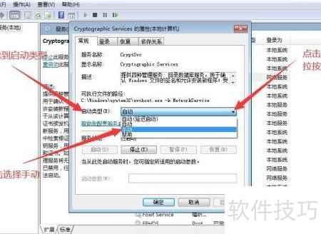 Cryptographic Services服务负责提供目录数据库支持、受保护的根证书管理、自动更新根证书以及密钥管理四项核心功能。若要正常使用这些功能,必须启用该服务。该服务的启动类型分为手动和自动两种模式。设置方式如下:打开服务管理界面,找到Cryptographic Services,右键选择属性,在启动类型中根据需求选择自动或手动,然后点击确定并启动服务即可。合理配置可确保系统安全功能稳定运行,具体操作步骤简单易行,适合各类用户参考执行。