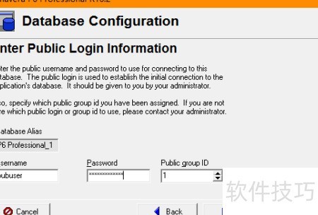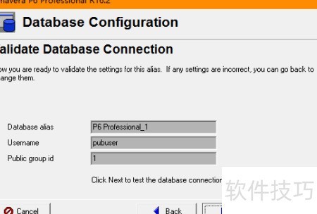 3、 重新测试时,P6 Professional连接数据库需使用public账号,用户名为pubuser,密码请参考P6 EPPM安装配置时设置的密码。确认测试通过后,即可完成数据库连接的配置工作。