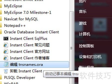 3、 安装完成后,系统将自动打开 tnsnames.ora 文件的记事本窗口,请先将其最小化,以便后续配置远程连接时使用。若误将该窗口关闭,可点击电脑左下角的程序菜单,找到Oracle Database Instant Client文件夹,双击其中的编辑选项即可重新打开 tnsnames.ora 文件进行修改。请确保在配置过程中正确操作,以免影响连接设置。