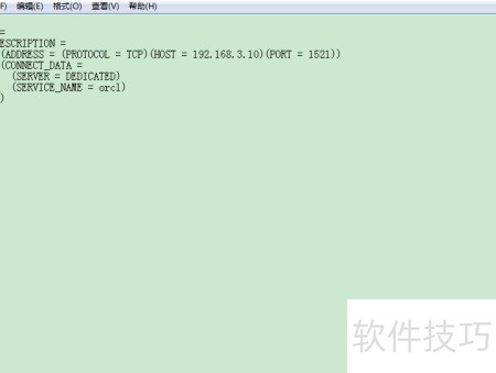 7、 注册完成后,即可配置软件连接远程数据库。打开记事本文件 trsnames.ora,将其中内容替换为远程数据库的连接信息。将示例中的310改为便于识别的远程服务器简称,192.168.3.10更新为实际的远程服务器IP地址,1521保持或根据实际情况修改为对应的Oracle服务端口,通常默认为1521。保存文件后即可建立连接。