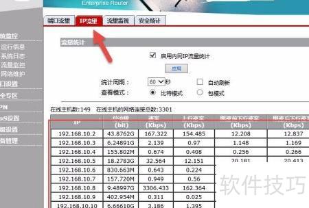 3、 点击IP流量即可查看局域网中各台电脑的流量情况。