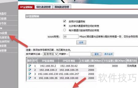 7、 发现异常流量的IP后,可对其进行限流操作。进入QoS设置中的IP流量限制,即可查看并管理已配置的限流IP段。
