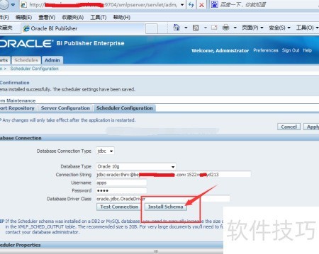 4、 点击安装Schema按钮,系统会将调度器的结构自动部署到数据库中,完成后页面即可正常显示所有内容。