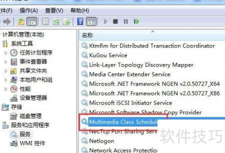 5、 在服务列表中找到多媒体类调度程序,然后双击打开。