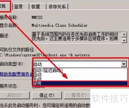 4、 右键点击多媒体程序调度器,先选择停止服务。接着再次右键该服务,进入属性设置。在常规选项中,将启动类型更改为禁用。完成设置后点击确定。此举有助于释放系统资源,减少后台占用,从而提升网络游戏的运行速度与流畅度,改善整体体验。