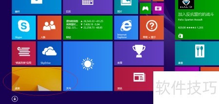 1、 启动Win8系统,进入开始屏幕后点击桌面磁贴。