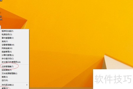 2、 右键点击任务栏的Windows图标,选择任务管理器即可打开。