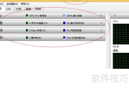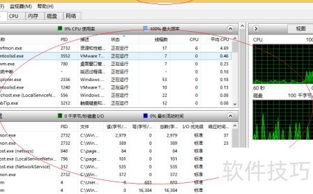 6、 通过资源监视器查看电脑运行状态,本例操作完毕,希望能为大家提供帮助。