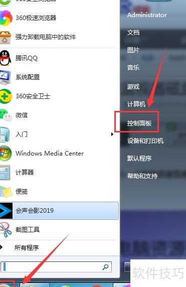 1、 点击开始菜单,进入控制面板选项。