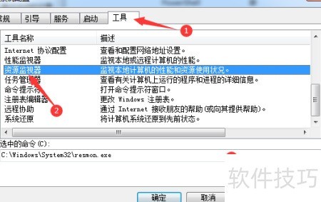 4、 依次选择工具选项卡与资源监视器,随后点击启动按钮即可。