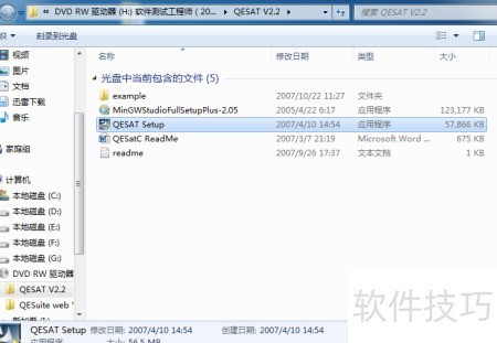 1、 进入QESAT V2.2软件测试工具的安装目录。