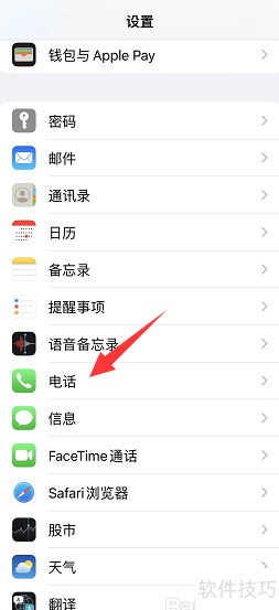 1、 进入手机设置,选择电话选项