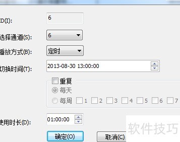15、 播放时间指节目开始播出的时刻,适用于插播和定时播模式,顺播模式下无需设定。