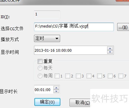 31、 选择定时播放可设定CG发布时间,若选重复,则可设置每日或每周循环播放。