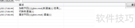 34、 日志功能用于记录节目单自动播出的详细信息,支持通过清空按钮清除内容,并可通过导出到文件按钮将日志保存至本地文件,具体操作所示。